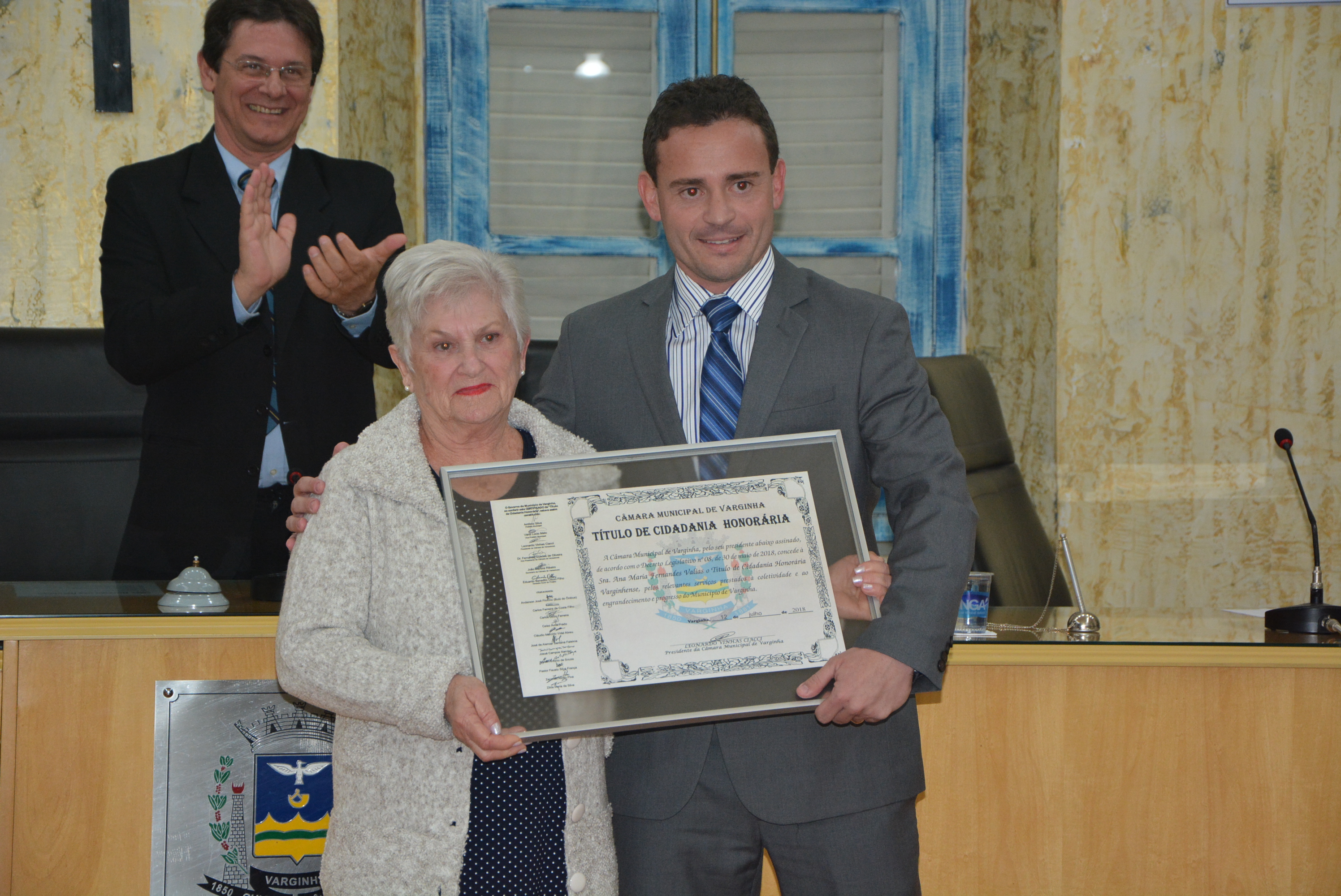 CÂMARA DE VARGINHA ENTREGA TÍTULO DE CIDADANIA PARA PROFESSORA ANA MARIA FERNANDES VALIAS